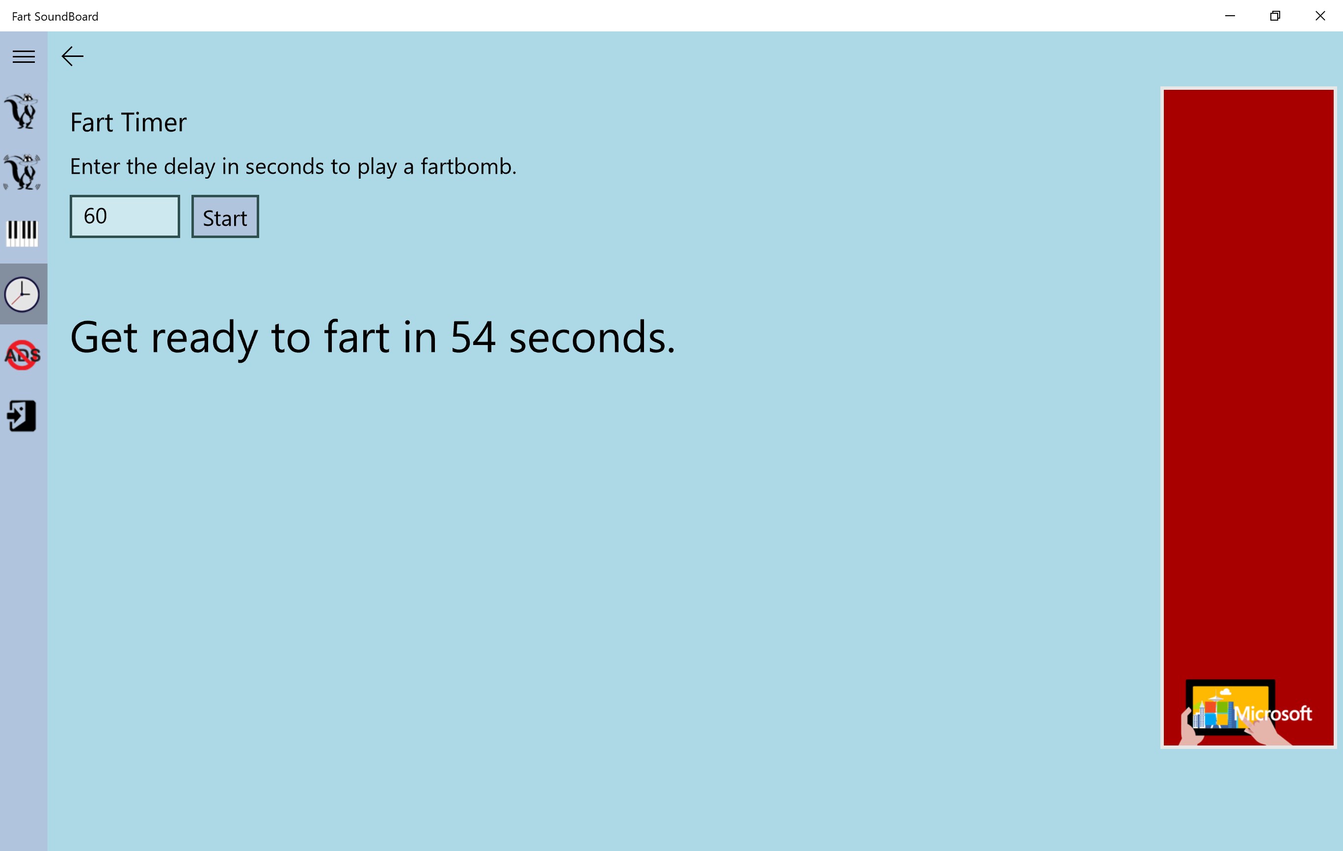 Just tab the buttons to play the fart sound and impress your friends (or just the other way around).