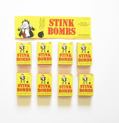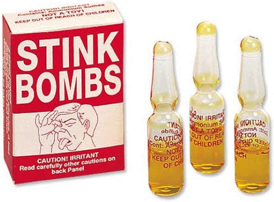 Forum Novelties Liquid Fart Gag Prank Joke Spray Can Stink Bomb Smelly Stinky Gas Crap Net WT .25 GMS . . . . The thin glass capsules break easily, releasing a pungent sulphuric odor . Place the vial between sheets of toilet paper and you'll release the odor without having to worry about cleaning up broken glass--though the glass is so thin, it . . .