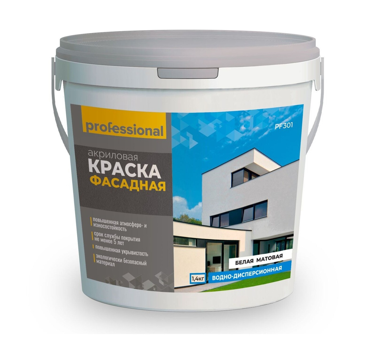 Краска фасадная водно-акриловая - ПРОФФАСАД АКВА Краска (эмаль) для фасадов и бетона . Матовая .