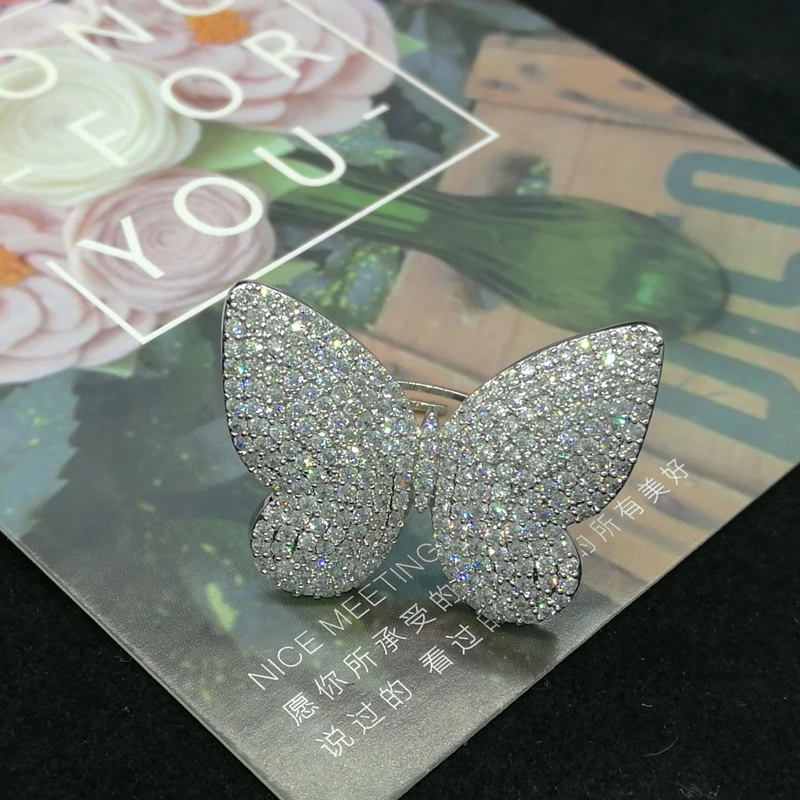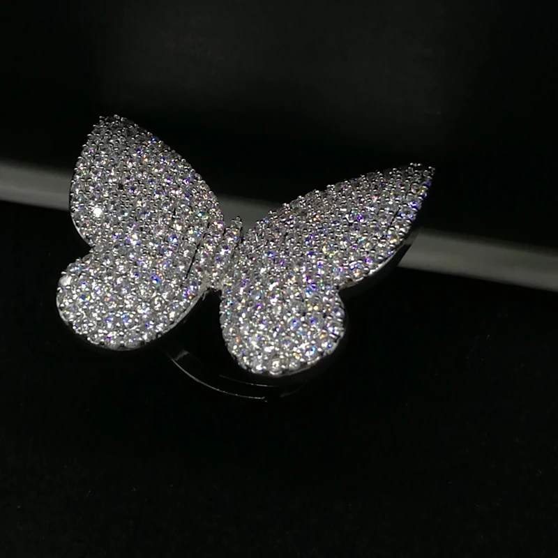 Fashion Clear Big Butterfly Adjustable Size Wedding Rrings White Gold Color Micro Rhinestone Pave Anillos Mujer R-150 - Купить с бесплатной доставкой
