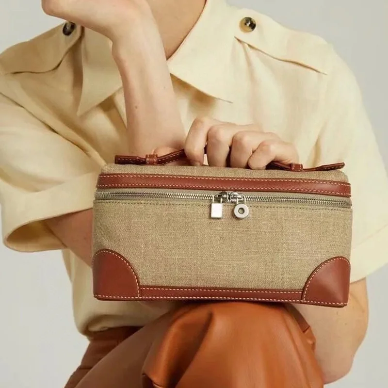 bnmBrVRsHere you can buy Fashion Cowhide Linen Patchwork Handbag Classic Versatile Single Shoulder Bag Women's New Chic Simple Zipper Design Box Bag with free delivery to your post office.