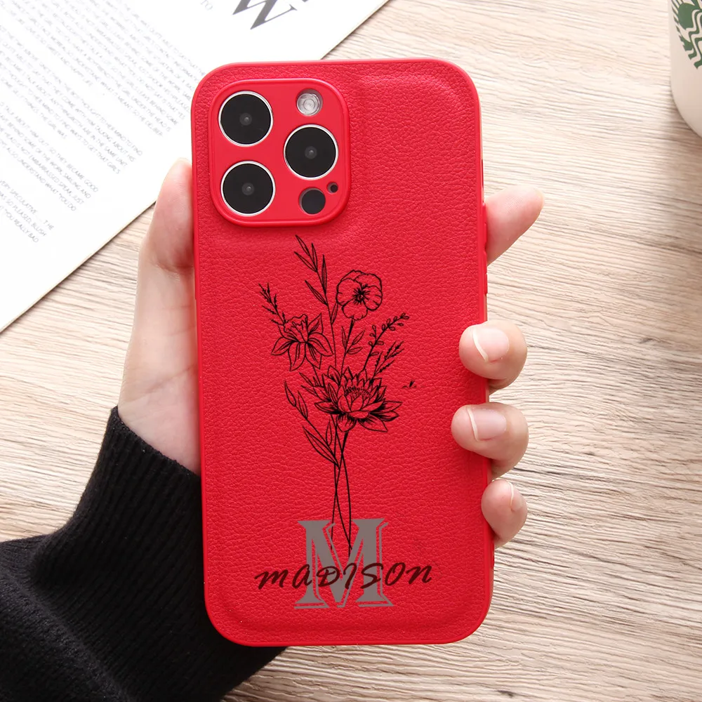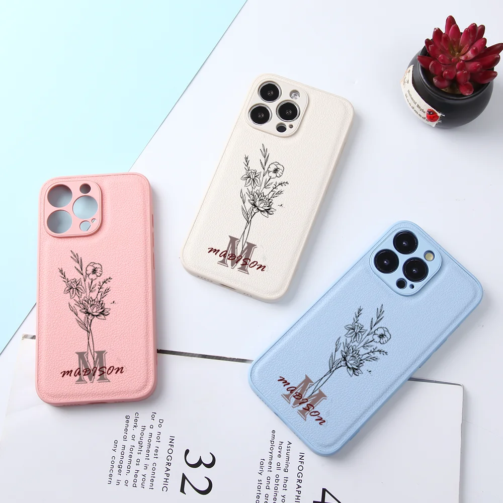 Fashion Custom Name Phone Case Large Letters for iPhone 14 13 12 11Pro Max XS X Plus Leather Full Lens Protection Sketch Flower - Купить с бесплатной доставкой