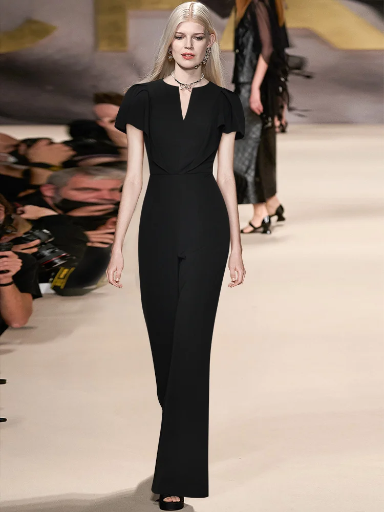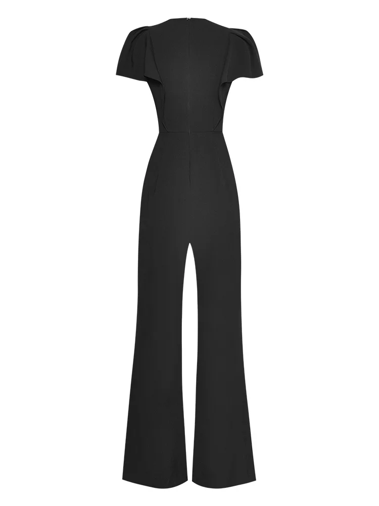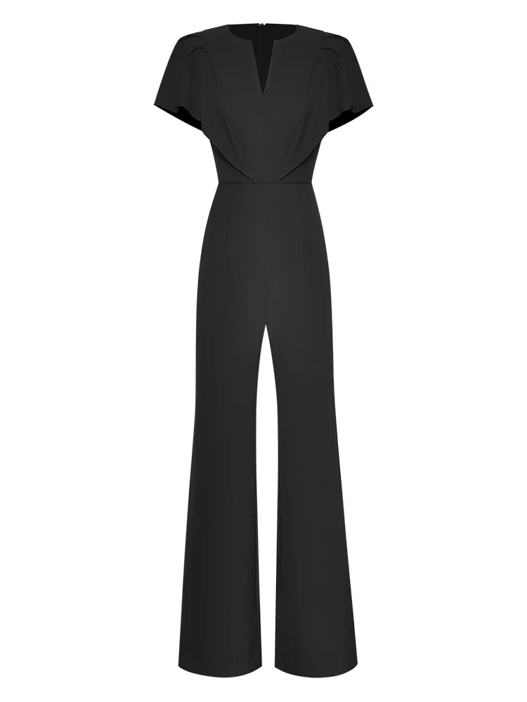 fdWmGpGGHere you can buy Fashion Designer Summer Simplicity Jumpsuits Women's V-neck Ruffles Buttock Covering Black Straight Pants Rompers with free delivery to your post office.