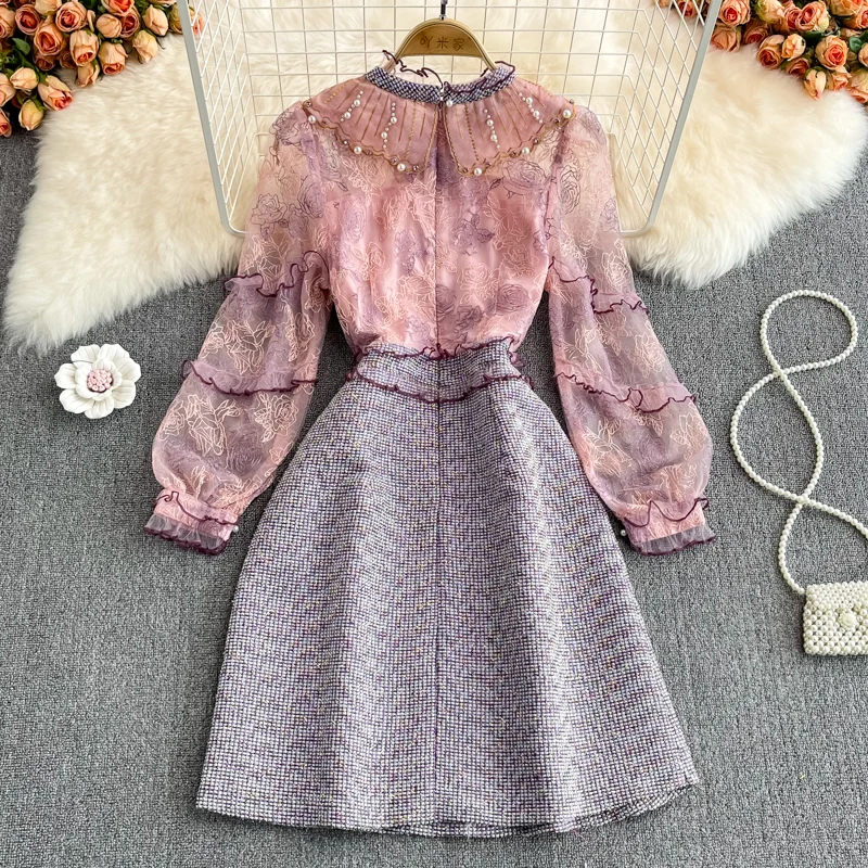«Fashion Designer Tweed Mesh Patchwork Mini Dress Ruffled Embroidery Beading High Wasit Office Lady A Line Autumn Dresses S6916#» по лучшей цене на рынке! Всего за 35$ (3325рублей)
