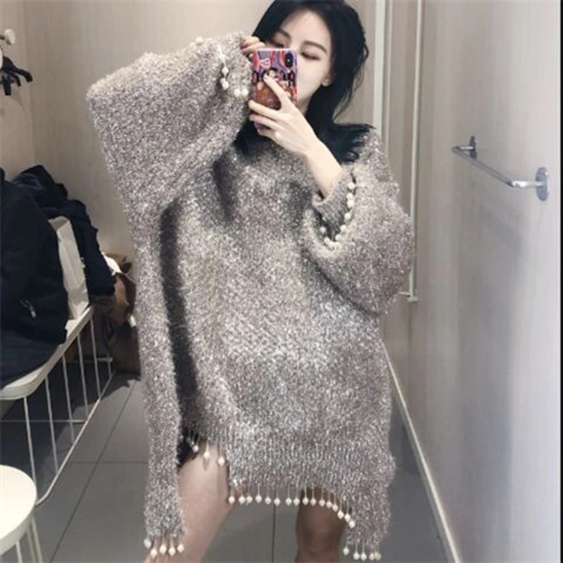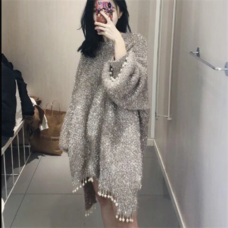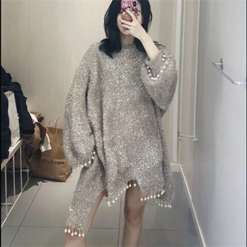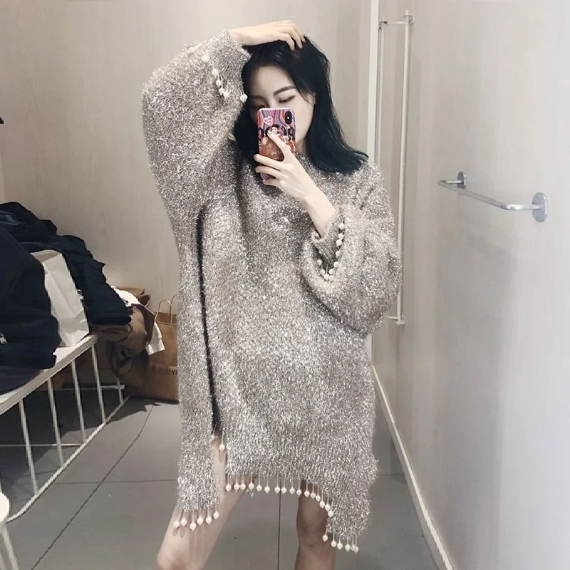 «Fashion Luxury Bright Silk O neck Full Sleeve Long Knit Sweater 2022 Women Sexy Pearl Tassel Party Club Knitted Pullovers Femme» по лучшей цене на рынке! Всего за 25$ (2375рублей)