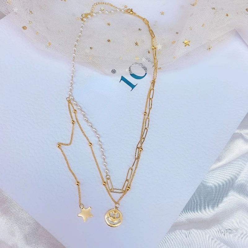 vSJDJadncДолго искали Fashion New Double-layer Pearl Star Smiley Titanium Steel Necklace Female Net Red Unique Design Jewelry, но не могли найти? Предоставляем вашему вниманию Fashion New Double-layer Pearl Star Smiley Titanium Steel Necklace Female Net Red Unique Design Jewelry по лучшей цене на рынке!