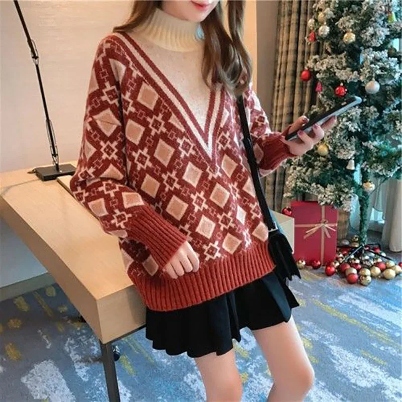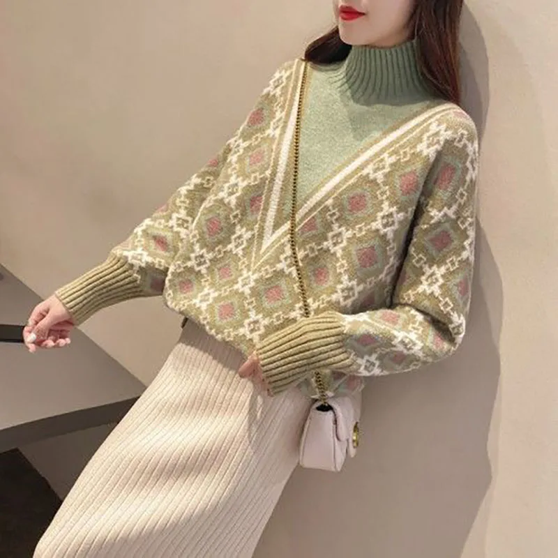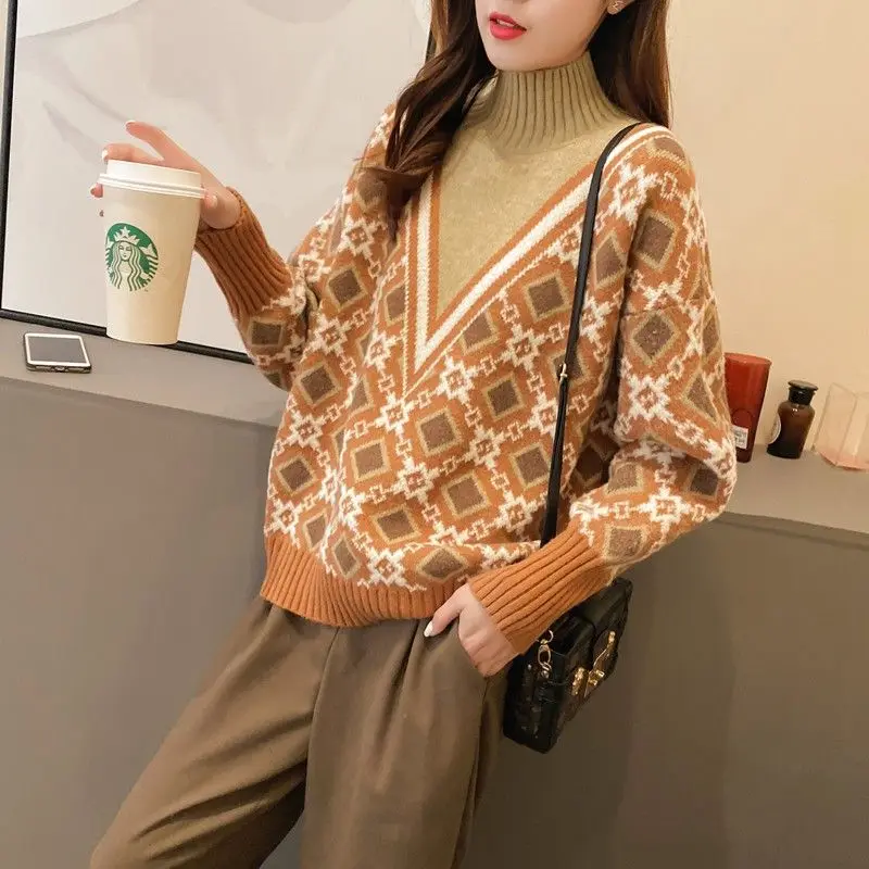 «Fashion Turtleneck Spliced Printed Fake Two Pieces Sweaters Women's Clothing 2022 Autumn New Loose Casual Pullovers Warm Tops» по лучшей цене на рынке! Всего за 21$ (1995рублей)