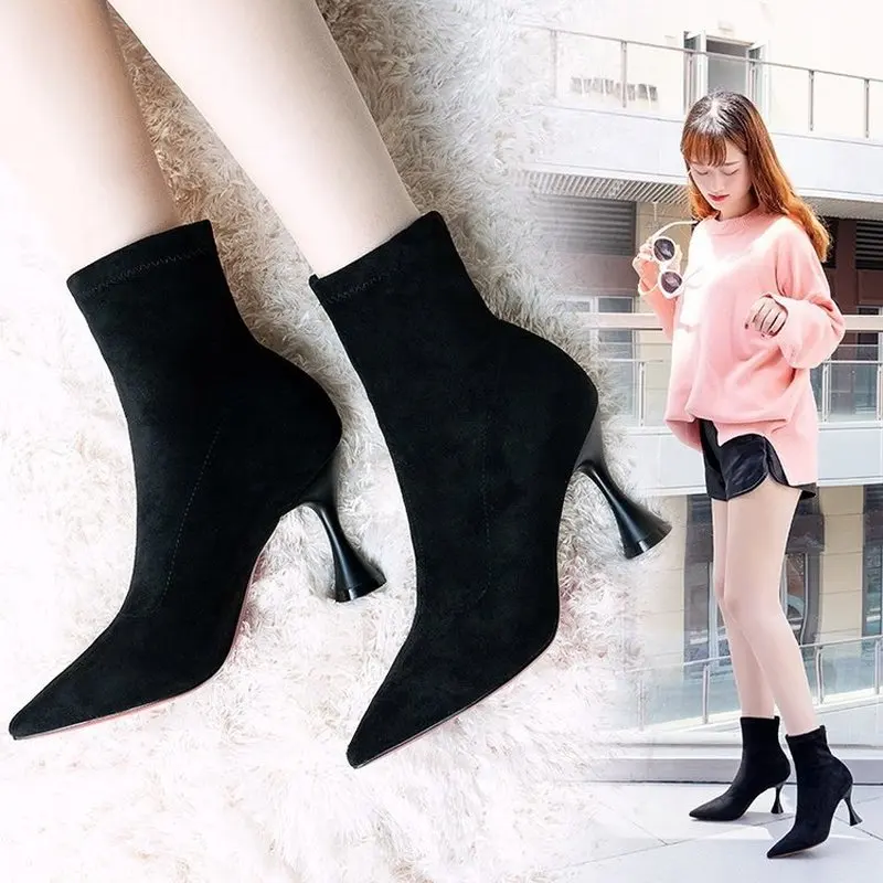«Fashion Women Ankle Boots Pointed Toe High Heel Stiletto Soft Suede Slip-on Boot Purple Black Red Cozy Botas Flock Booties Warm» по лучшей цене на рынке! Всего за 8$ (760рублей)