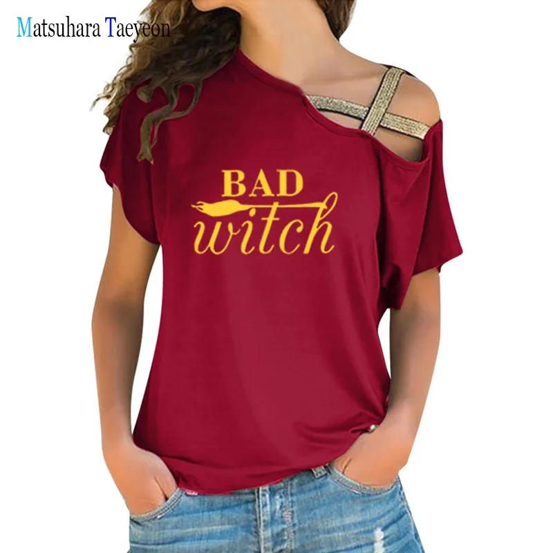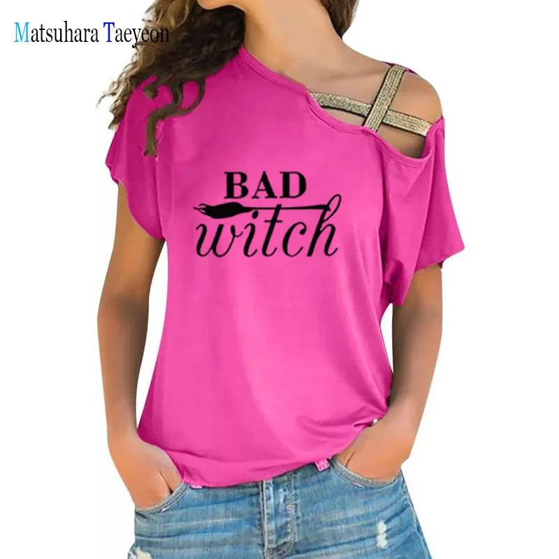 «Fashion Women T-shirt Bad Witch Summer T Shirt Irregular Bandage Printed Cute Harajuku Tee Shirt Tshirt Woman Clothing» по лучшей цене на рынке! Всего за 9$ (855рублей)