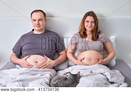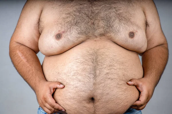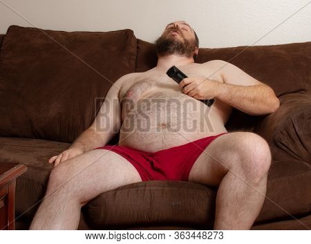 Fat guy with topless girl