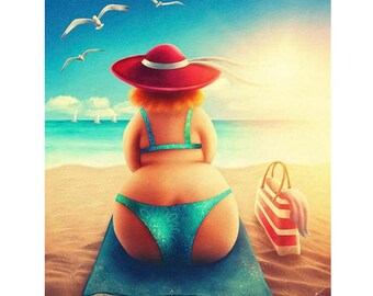Popular . 1-100 of 2,478 . Overweight woman on beach with hands up . Obese woman with sweet ice lolly . Woman Easter Bunny relaxing on the beach . Watercolor fat girl in bikini swimsuit is sunbathing . Body positive illustration on white background . Funny woman with ball . Woman with bunny ears .