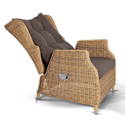 La chaise pliante multifonctionnelle "Forio" permet d'aménager pratiquement n'importe quelle zone de loisirs. Une fois assemblé, il peut être utilisé comme chaise de salle à manger et avec un dossier inclinable comme chaise longue confortable. La taille du modèle est de 750×870×1000 mm. Le meuble repose sur un cadre en aluminium à haute résistance. Il est doté d'une tresse décorative à la main en rotin artificiel. Présentée dans une teinte paille naturelle, la chaise de jardin est complétée par des coussins pratiques pour une assise confortable. Ils sont fabriqués de couleur grise en polyester dont la densité atteint 230 g/m2. Le matériau a une imprégnation hydrofuge.
