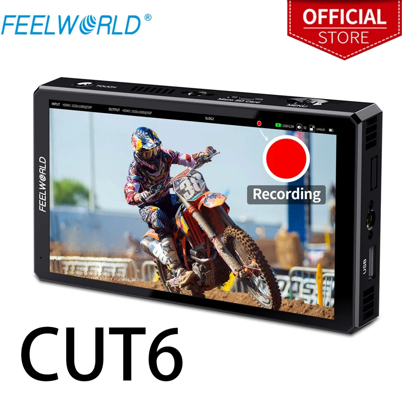 Feelworld CUT6 Recording Field Camera DSLR Recorder Monitor,6 Inch 1920x1080 Touch Screen Waveform HDR HDMI Loop Out LUT 4K HDMI - Купить с бесплатной доставкой
