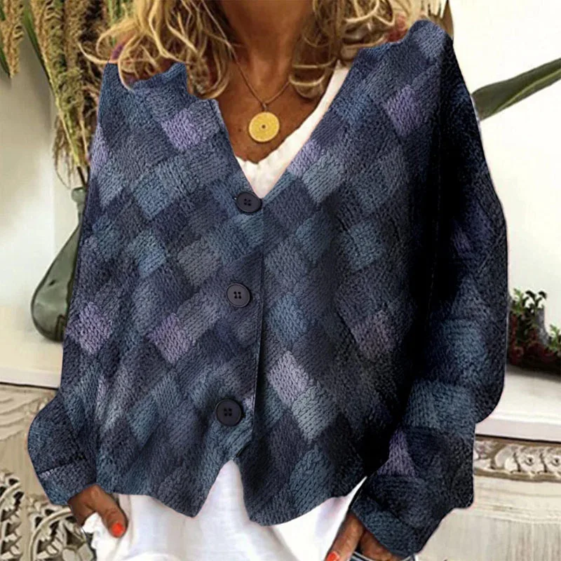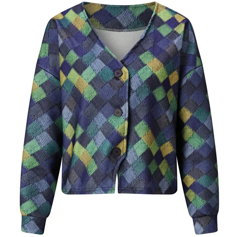 HkGhqZMjHere you can buy Female Casual V Neck Button Irregular Jacket Women Clothes Outerwear Spring Autumn Long Sleeve Patchwork Geometric Pattern Coats with free delivery to your post office.