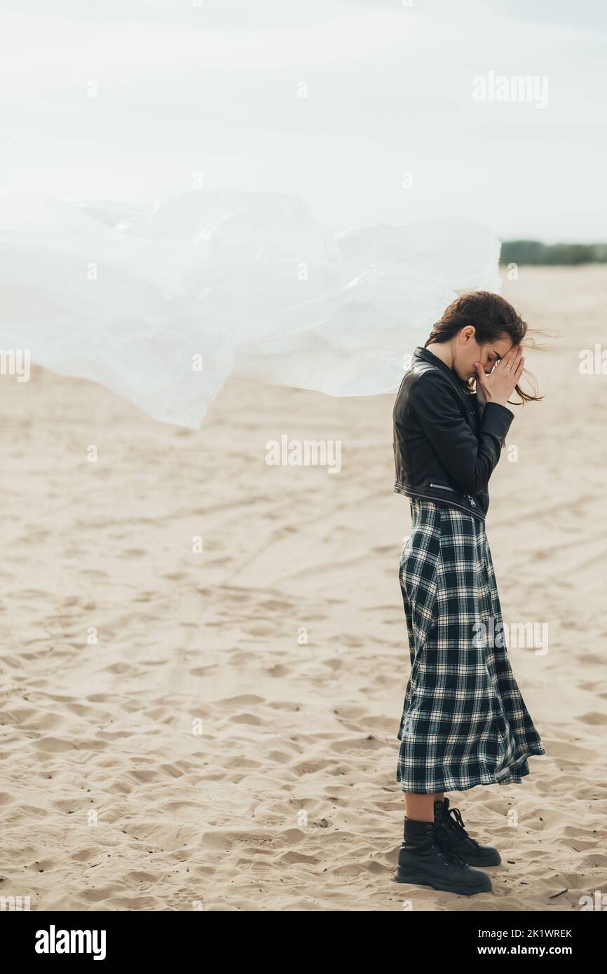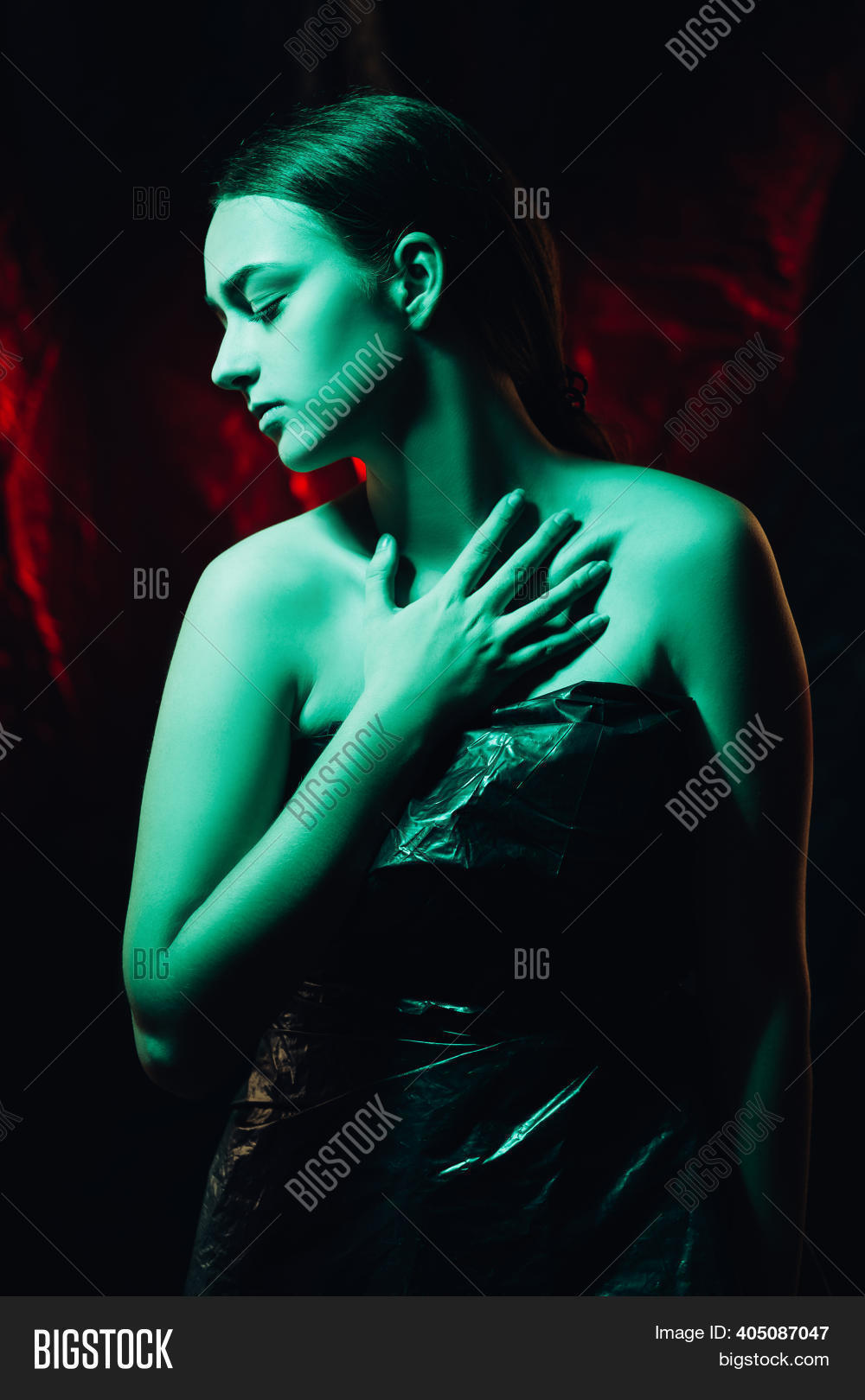 Brunette Hair dped in fishnet nylons and gloves