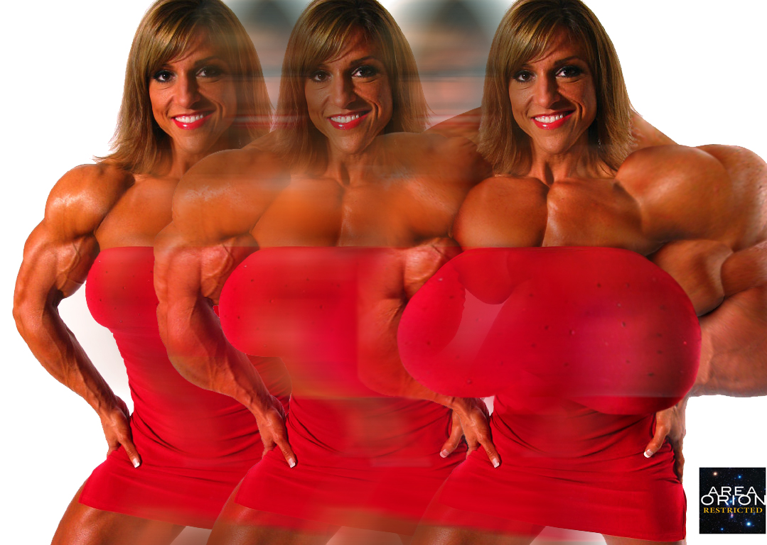 During the next month Lea showed an incredible obsession with her workouts, especially she liked exercises, which involved her already massively bulging biceps. I continued to join her in our home gym time to time, but usually after one hour I got totally wasted and could not go on for more. Unlike Lea. She had great stamina and was able to workout hour after hour. It seemed she did not care about symmetry of her muscle development at all. Day after day, rep after rep she invested more time into curling big dumbbells. One day I have noticed posters of some female fitness models and bodybuilders in her room. Jody Miller was smiling at me from the wall holding an impressive double biceps pose. Lea mentioned once she wants to have her biceps this big soon.