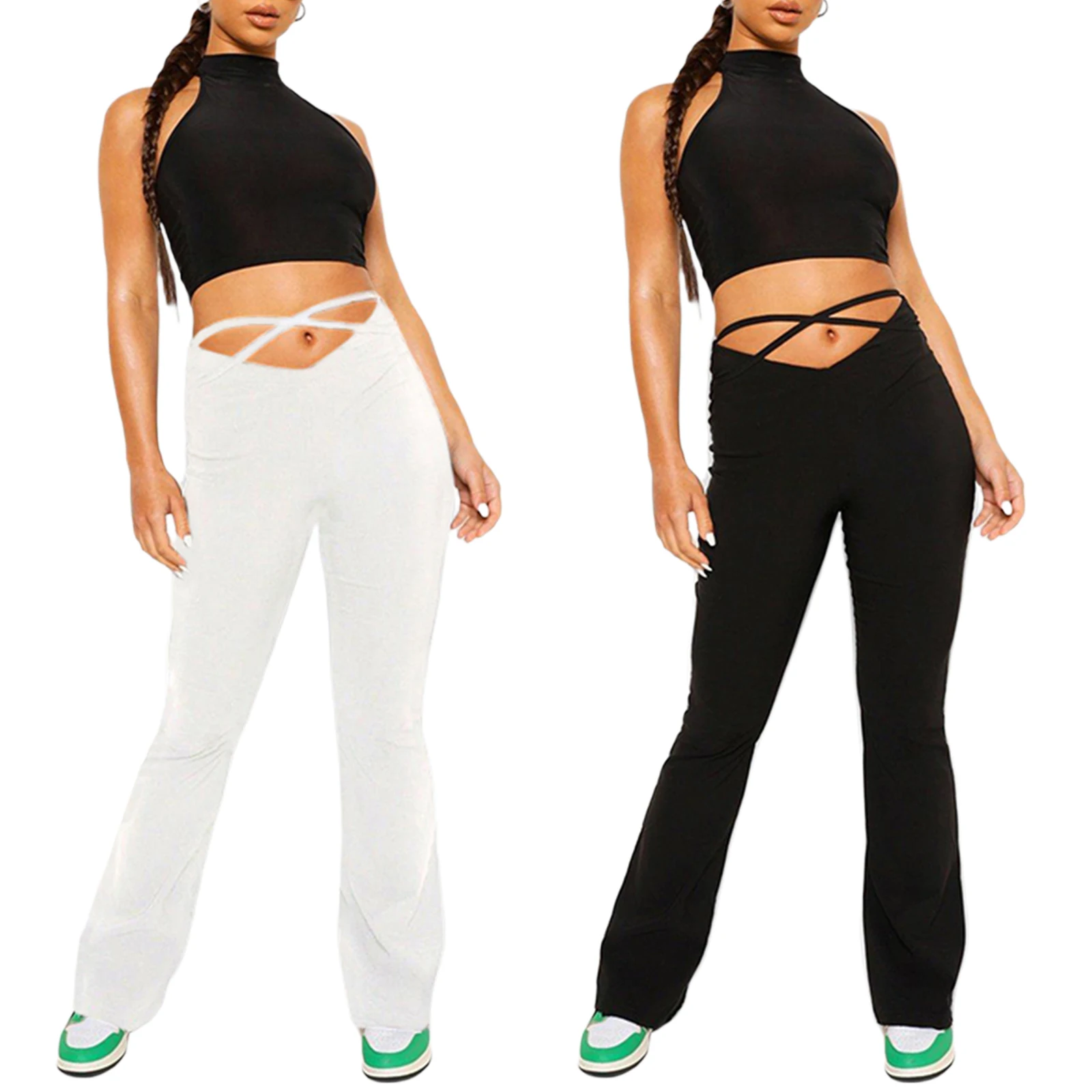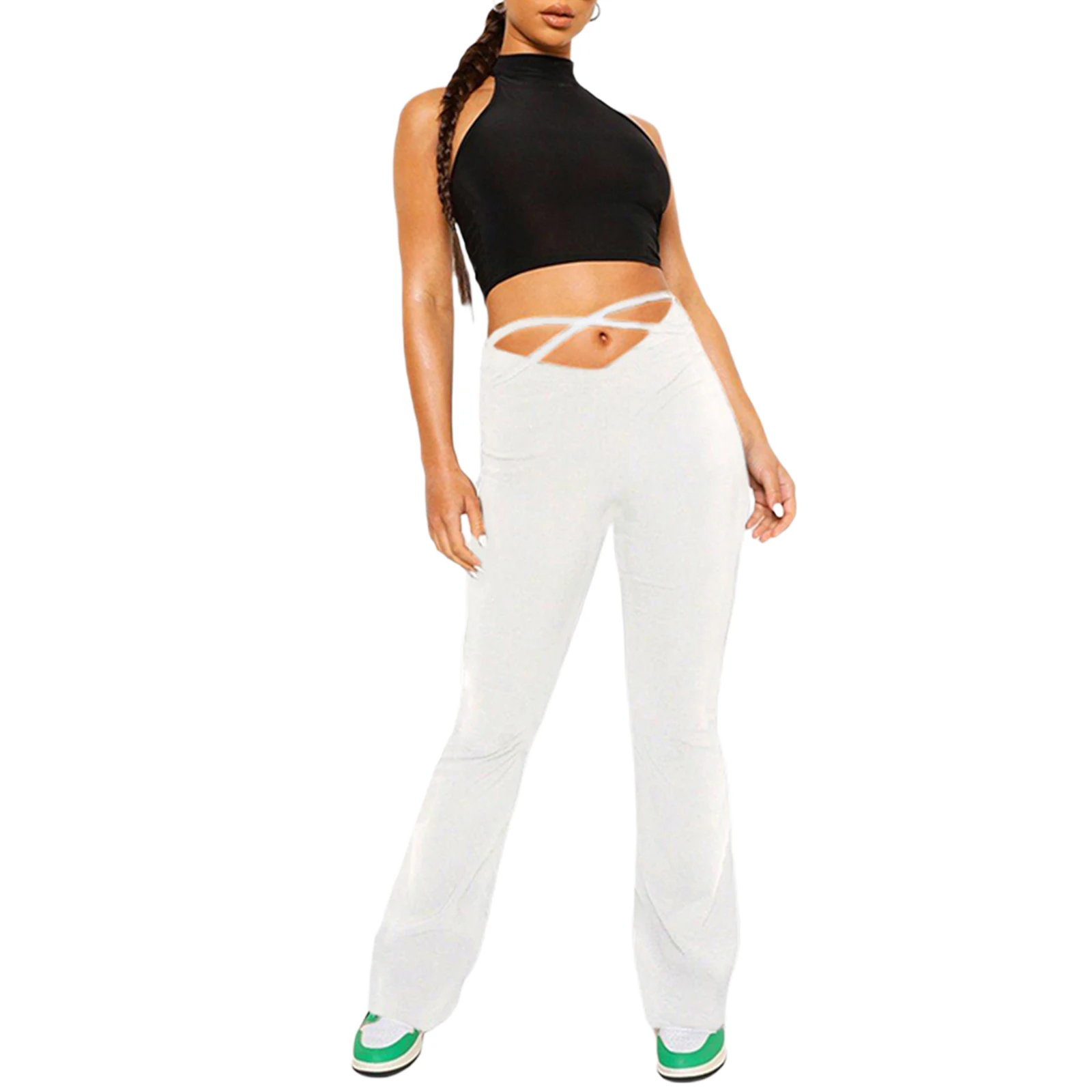 "Female Trousers, Adults Solid Color High Waist Bell-Bottomed Pants for Spring Fall, White/Black/Purple/Green, XS/S/M/L" * Buy Now Just For 3$