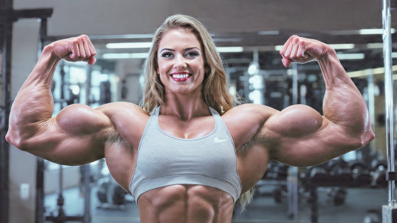 Female bodybuilder oil