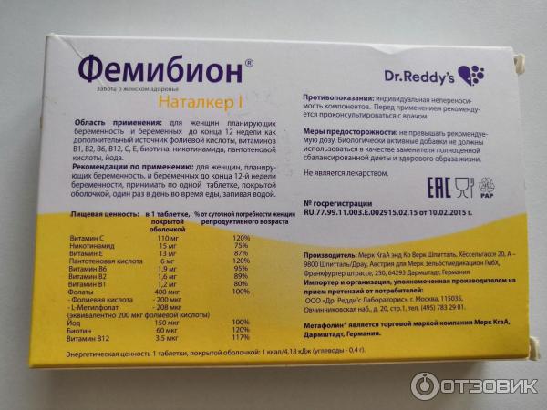 Фемибион 1 - 16 отзывов, инструкция, аналоги, цена 550 руб .