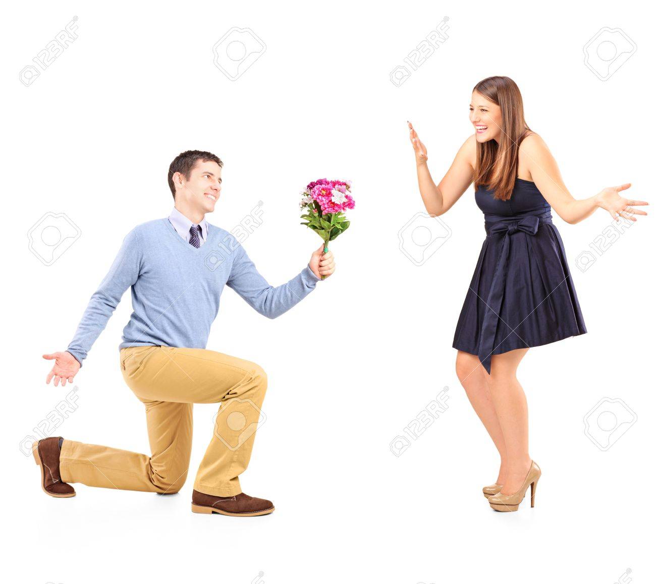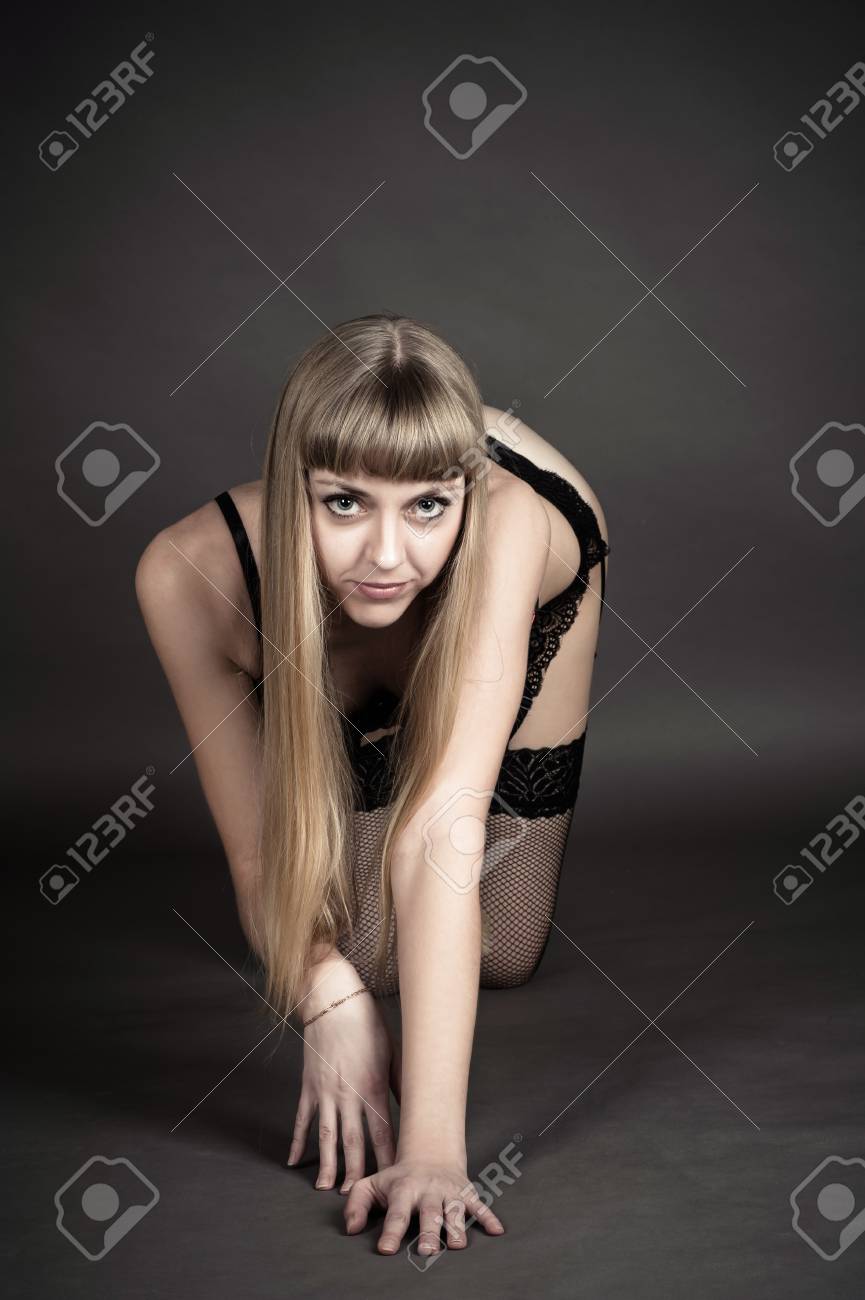 Femme excitée à genoux