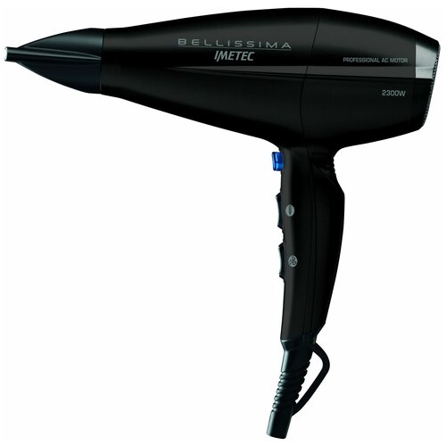 Caractéristiques principales - Type : sèche-cheveux - Puissance : 2300 W - Type de moteur : moteur à courant alternatif (AC) Commande - Commande : bouton poussoir, mécanique - Nombre de vitesses : 2 - Nombre de modes de chauffe : 3 - Réglage indépendant du chauffage et débit d'air : oui - Emplacement des boutons de commande : avant Buses - Nombre de buses : 2 - Buse concentrateur : oui - Taille de la buse concentrateur : 11 mm - Buse diffuseur : oui Caractéristiques complémentaires - Soufflage d'air froid : oui - Grille de protection amovible : oui - Suspendue boucle : oui Couleur et matière - Couleur : noir - Matériau du boîtier : plastique Alimentation - Longueur du cordon d'alimentation : 1,8 m Équipement - Notice : oui