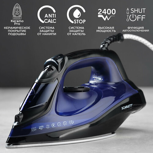 Le fer Scarlett SC-SI30K57 au corps en plastique violet-noir est équipé d'une semelle parfaitement lisse avec revêtement céramique KeramoPro, qui offre une excellente glisse et une manipulation douce de tous types de tissus. L'appareil de 2400 W glisse facilement sur la surface...Fer SCARLETT SC-SI30K57 2400W, céramique. semelle, arrêt automatique Le fer Scarlett SC-SI30K57 avec un corps en plastique violet-noir est équipé d'une semelle parfaitement lisse avec revêtement céramique KeramoPro, qui offre une excellente glisse et une manipulation douce de tous types de tissus. L'appareil de 2 400 W glisse facilement sur la surface de n'importe quel tissu et peut cuire efficacement des articles à la vapeur, fournissant constamment jusqu'à 35 grammes de vapeur par minute en mode repassage à la vapeur. En mode Steam Boost, il crée 140 g. quelques par minute, redressant même les plis les plus indisciplinés. Le fer est équipé d'un arrêt automatique : il s'éteindra à temps si vous le laissez sans surveillance pendant 30 secondes en position horizontale et 8 minutes en position verticale. Il existe la possibilité de défroisser verticalement : cela permet de ranger manteaux ou costumes même sur un cintre. La fonction anti-goutte vous permet d'éviter l'apparition de chutes accidentelles sur les vêtements. Le système anti-calcaire, associé à la fonction autonettoyante, prolongera considérablement la durée de vie du fer et le protégera du tartre. Un poids optimal aide à lisser les zones inégales sans exercer de pression inutile sur vos mains. Un cordon pratique de 180 mm de long est en plastique, flexible, équipé d'un support à bille qui protège contre la torsion. Caractéristiques Fabricant SCARLETT Type Pour usage domestique Puissance, W 2400 Alimentation en vapeur continue Oui Vitesse d'alimentation en vapeur continue, g/min 35 Vapeur verticale Oui Coup de vapeur Oui Vitesse de poussée de vapeur, g/min 140 Matériau de la semelle Céramique Volume du réservoir d'eau, ml 280 Arrêt automatique Oui Thermostat Oui Système anti-goutte Oui Caractéristiques Système anti-calcaire ANTI-CALC Poids, g 1100 Largeur, mm 120 Hauteur, mm 140 Profondeur, mm 289