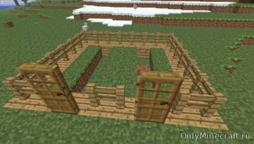 Постройка . Нужно подготовить свободную площадку для будущей фермы . Разместите траву в виде двух ярусов . Первый находится выше, так как вода, которая будет выливаться из выбрасывателей . . .