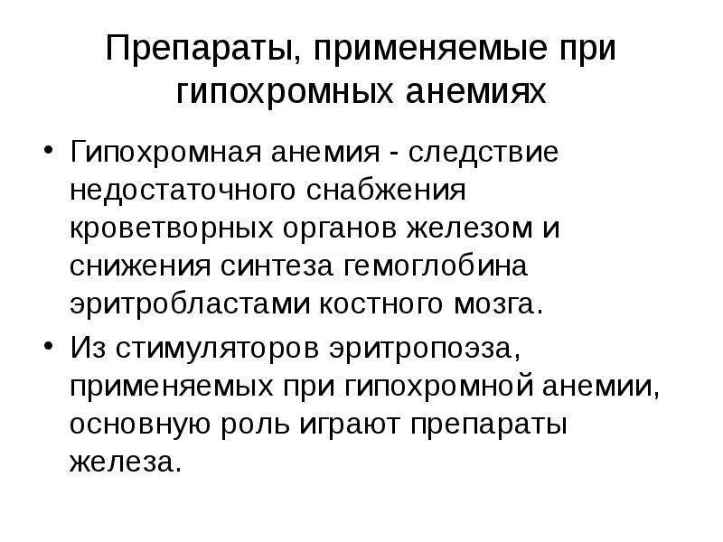 Препараты при гипохромной анемии фармакология