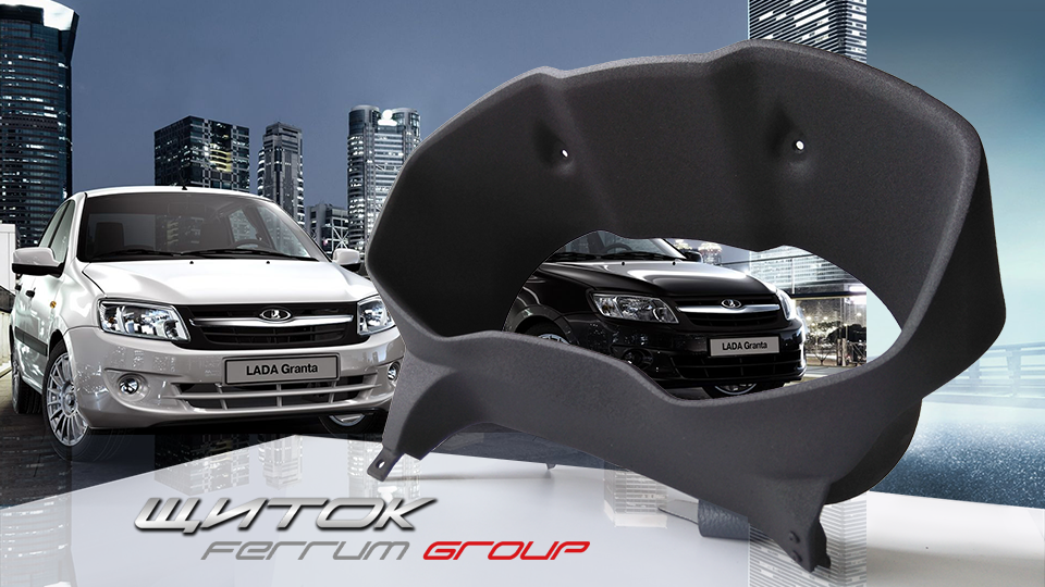 Щиток облицовки комбинации приборов Lada Granta с отделкой из кожи . Покрытие щитка из матовой кожи является антибликовым и устраняет лишние блики от попадания солнца, а также шумопоглощающим, позволяя избежать лишних . . .