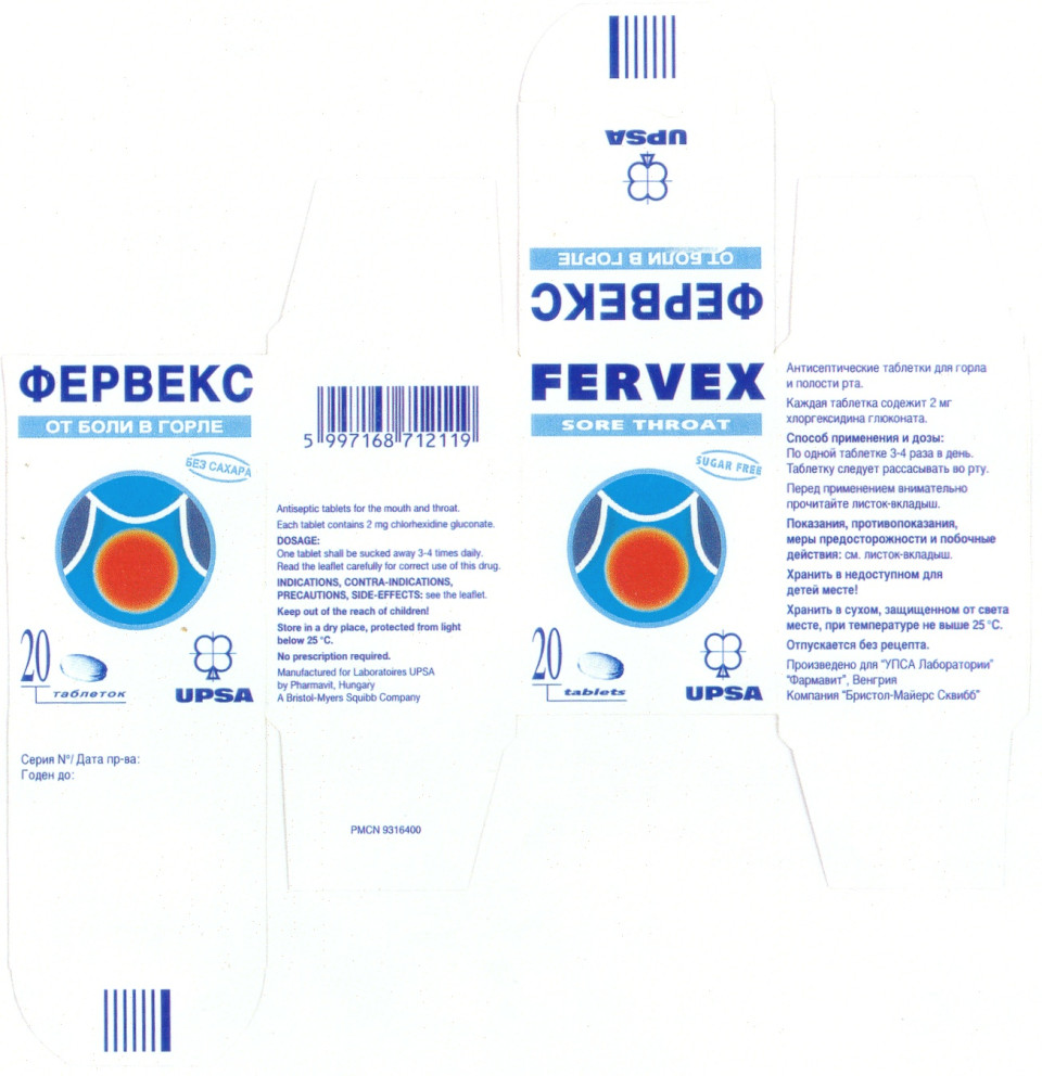 Фервекс от боли в горле табл . д/рассас . 2 мг; фл . 20 кор . 1; код EAN: 5997168730229; № П-8-242 N010454, 1998-09-08 от Pharmavit, a Division of Bristol-Myers Squibb (Венгрия); Истек срок 2003-12-01