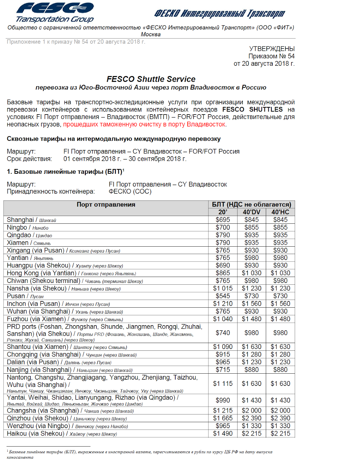 Феско тарифы