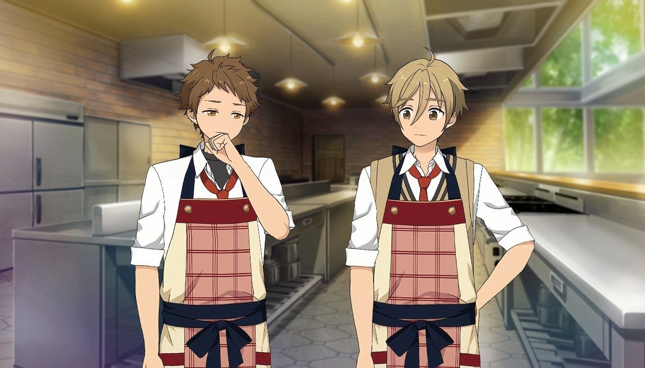 Томоя: В запасе всё ещё много ингредиентов, так что всё хорошо. Это так же и моя вина, что я не доглядел за тобой. Я помогу тебе с остальными, чтоб ты не испортил их, Мицуру.