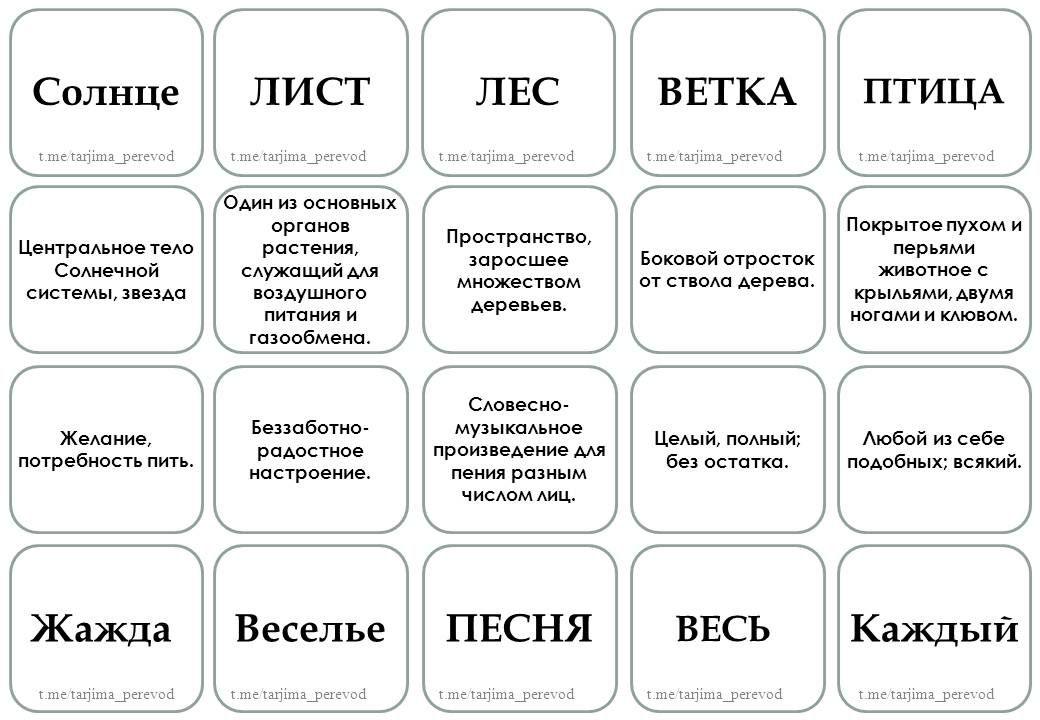 Игроки по очереди открывают по 2 карточки (любые). Если открыты одинаковые карточки (т.е. слово и его определение), то игрок забирает их себе и открывает следующую пару карточек. Если карточки не совпадают — игрок кладёт их на прежнее место лицевой стороной вниз и право хода переходит к следующему участнику.