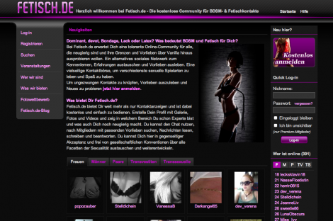Egal, ob Du ein Date in Deiner Nähe suchst oder einfach nur mit anderen Mitgliedern online chatten möchtest . Auf Fetisch .de ist das alles kein Problem . Und das Beste: Es ist vollkommen kostenlos . Schau doch mal in unserem Fetisch -Forum vorbei oder nutze unsere Fetisch -Suche .