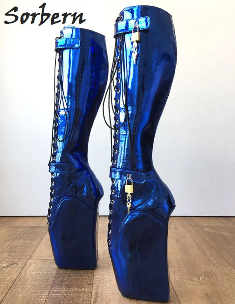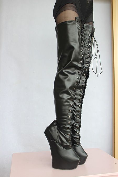 ofchina Высокий каблук сапоги черная обувь ноги носить фетиш моды из латексной кожи