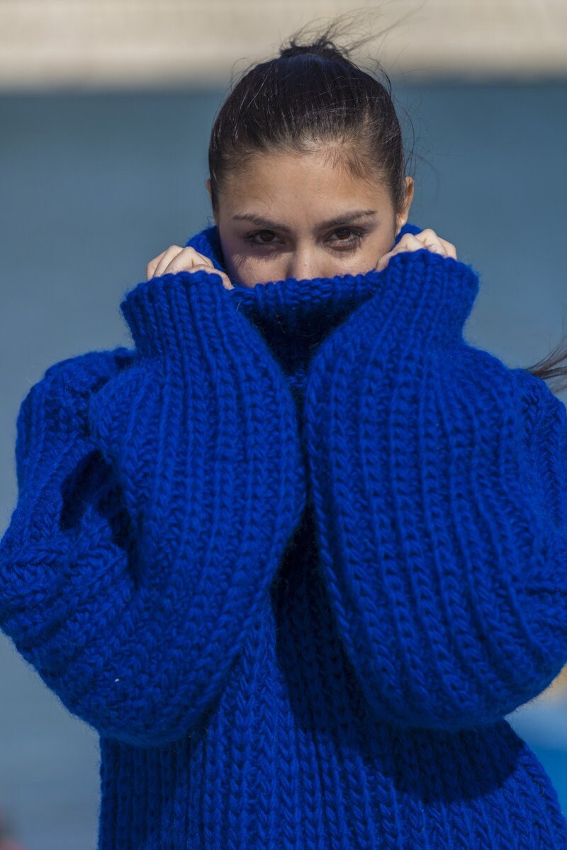 Juliett enjoing her turtleneck sweater
