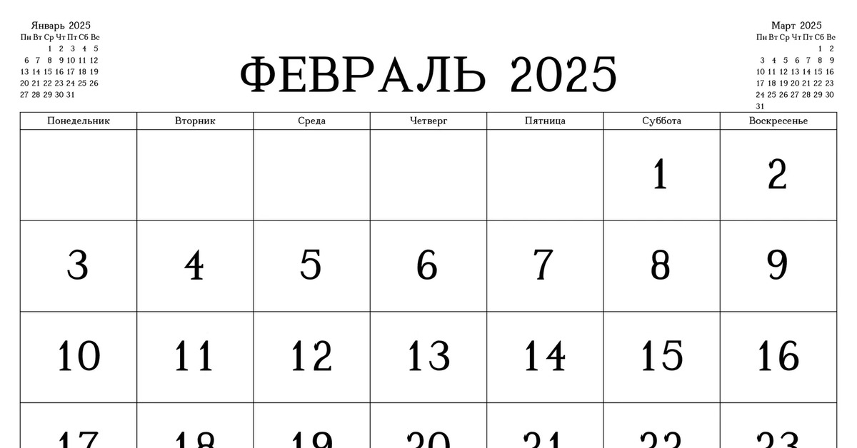 Февраль 25 год календарь
