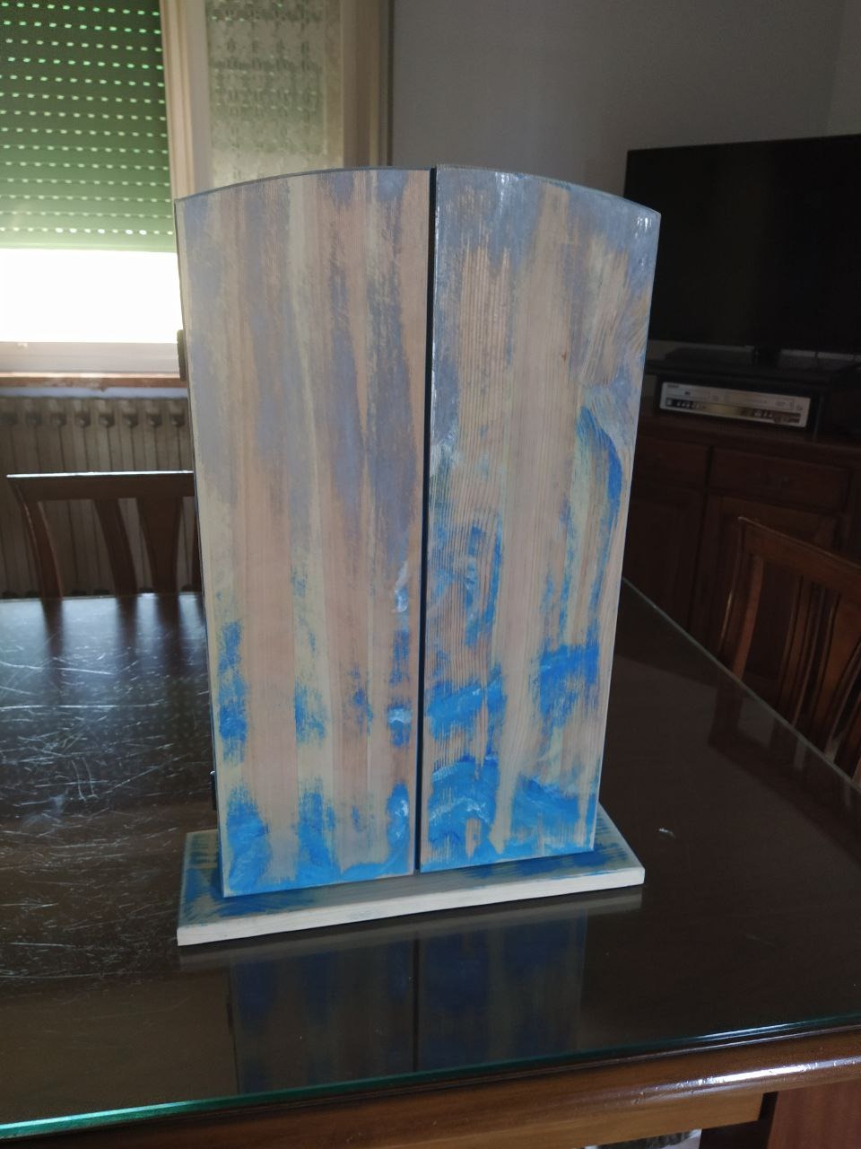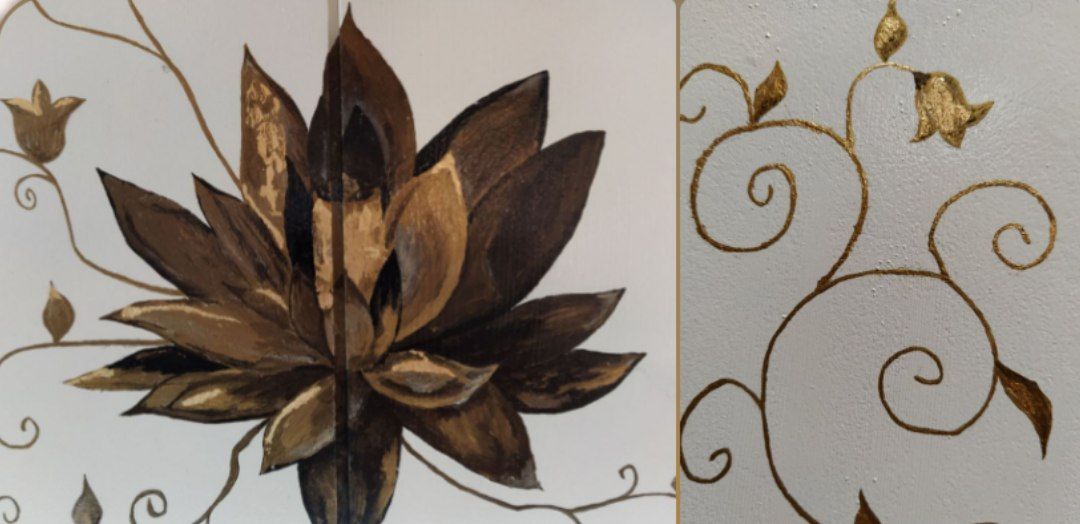 Con le tempere colorai il disegno e, infine, attaccai le foglie d'oro con la colla vinilica per dare un po' più di luce al disegno.
