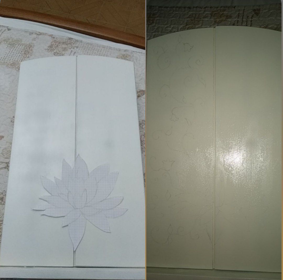 Su un foglio disegnai la bozza del disegno alla grandezza che mi serviva. Dopodichè ritagliai ogni singolo pezzo e lo ricalcai sul butsudan, così da non commettere errori.