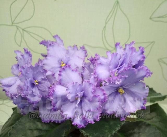 Фиалка Blue Dragon (Блу Дрэгэн) LLG/P .Sorano This magnificent variety flaunts semidouble and double large stars of light blue, accented by a dark blue center . Striking bands of light, reddish-purple surround each frilly edged blossom, randomly marked in variable, light green . Flowers look best when grown cool! Large, dark green foliage .