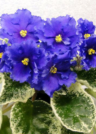 Сенполия ЛЕ-Грёзы Султана Е . Лебецкая Крупные насыщенно фиолетово сиреневые цветы с просвечивающими жилками и осветленной каймой . Пестролистник .