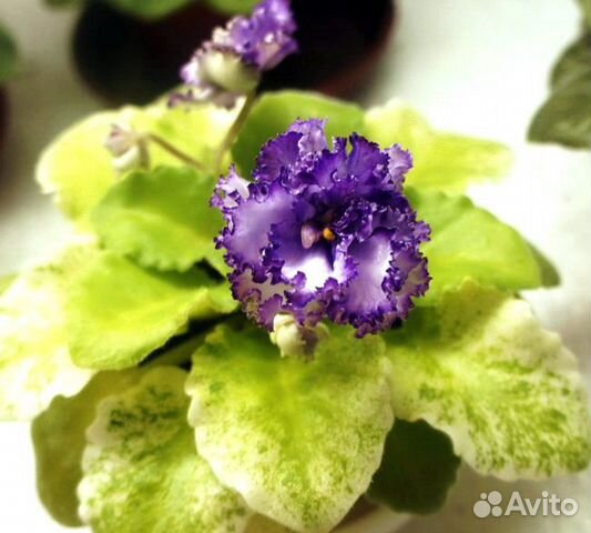 Фиалки украинской селекции . Крупные белые цветы с сильно гофрированной зеленой каймой, которая по мере роспуска цветка становится ярко-голубой . Стандартная зеленая розетка . Сорт 2019 года . . .