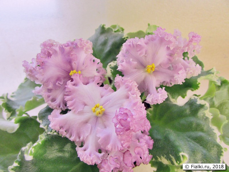 НК-Дюк де Ришелье (Н . Козак) . (сеянец, находится на проверке) . Хорошо держит форму цветов с очень знатными рюшами, розетка ровненькая, аккуратная, ярко выраженная пестролистность с розовым оттенком . . .