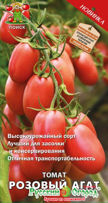 Розовый агат — среднеранний томат . По описанию оригинатора сорт относится к категории высокоурожайных, вкусных и удобных для цельноплодной консервации .