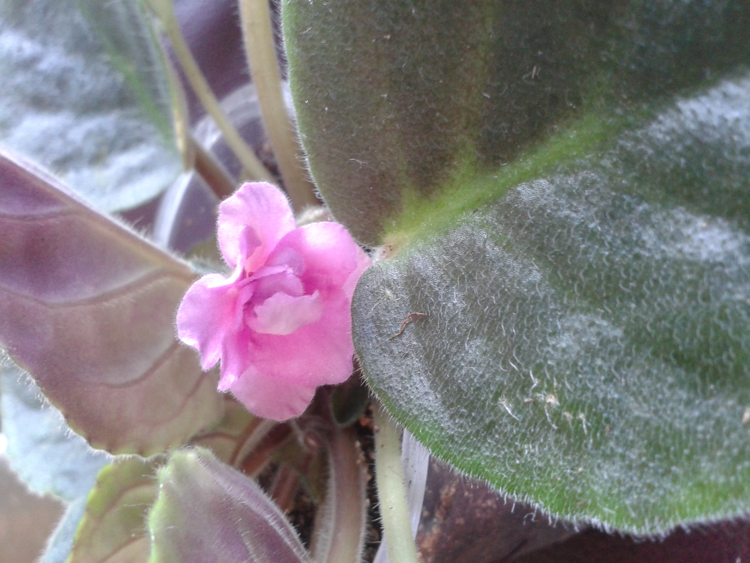 Фиалка с розовыми листьями