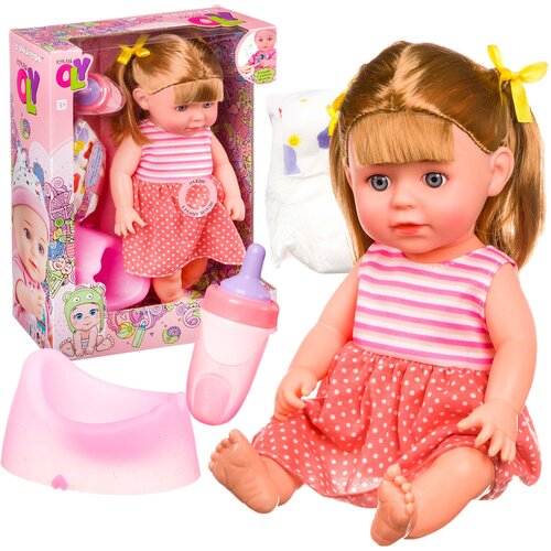 La poupée OLY de Bondibon est un charmant bébé qui saura certainement gagner le cœur de toutes les filles. Il a une drôle de tête et un joli costume que vous pouvez enlever et enfiler. Les bras et les jambes de bébé bougent, et il peut aussi boire au biberon et aller au pot ! Quand bébé est malheureux, il pleure, et il peut aussi émettre d'autres sons et même prononcer des mots ! Inclus avec la poupée, vous trouverez un biberon, un pot et une couche. Alimentation pour le mécanisme sonore - 3*AG13 (inclus dans le kit).