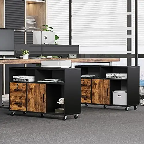 File Cabinet, Mobile Storage Cabinet 2-Drawer Lateral File Cabinet with Lock, Printer Stand with Open Storage Shelves for Home O - Купить с бесплатной доставкой