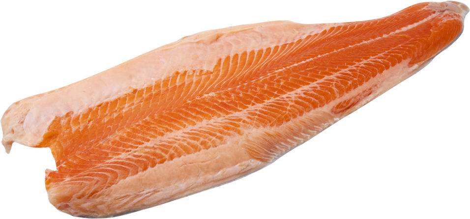 Форель филе-кусок замороженный~500г . Форель выращена на собственном хозяйстве на кормах без ГМО, красителей и антибиотиков, на озере Велье (Валдай, Новгородская область) .
