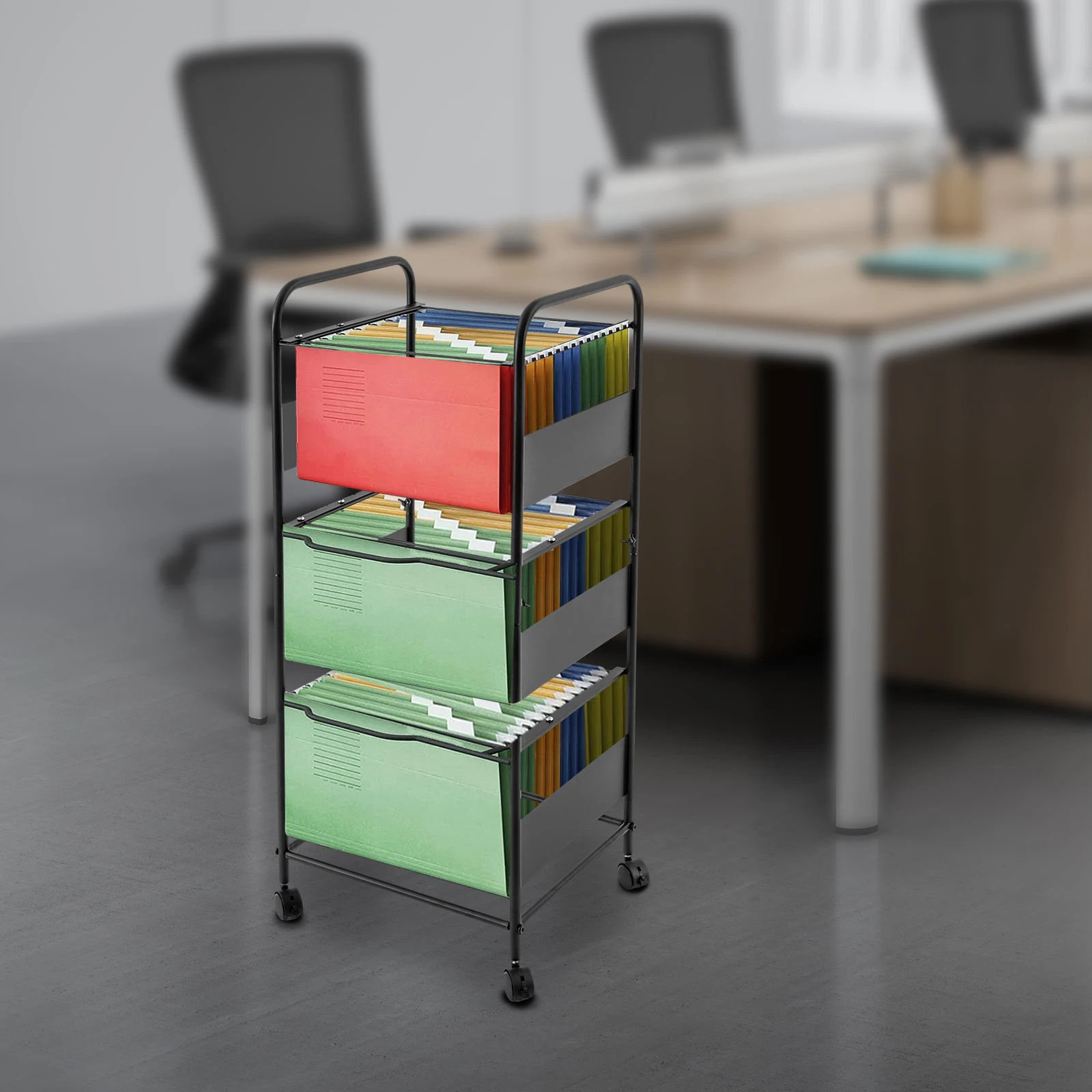 geLFPglSoHere you can buy File Storage Rack 3 Tiers Stationery Organizer With Wheels Hanging Files Movable Pull-Out File Folder Rack for Home Office with free delivery to your post office.