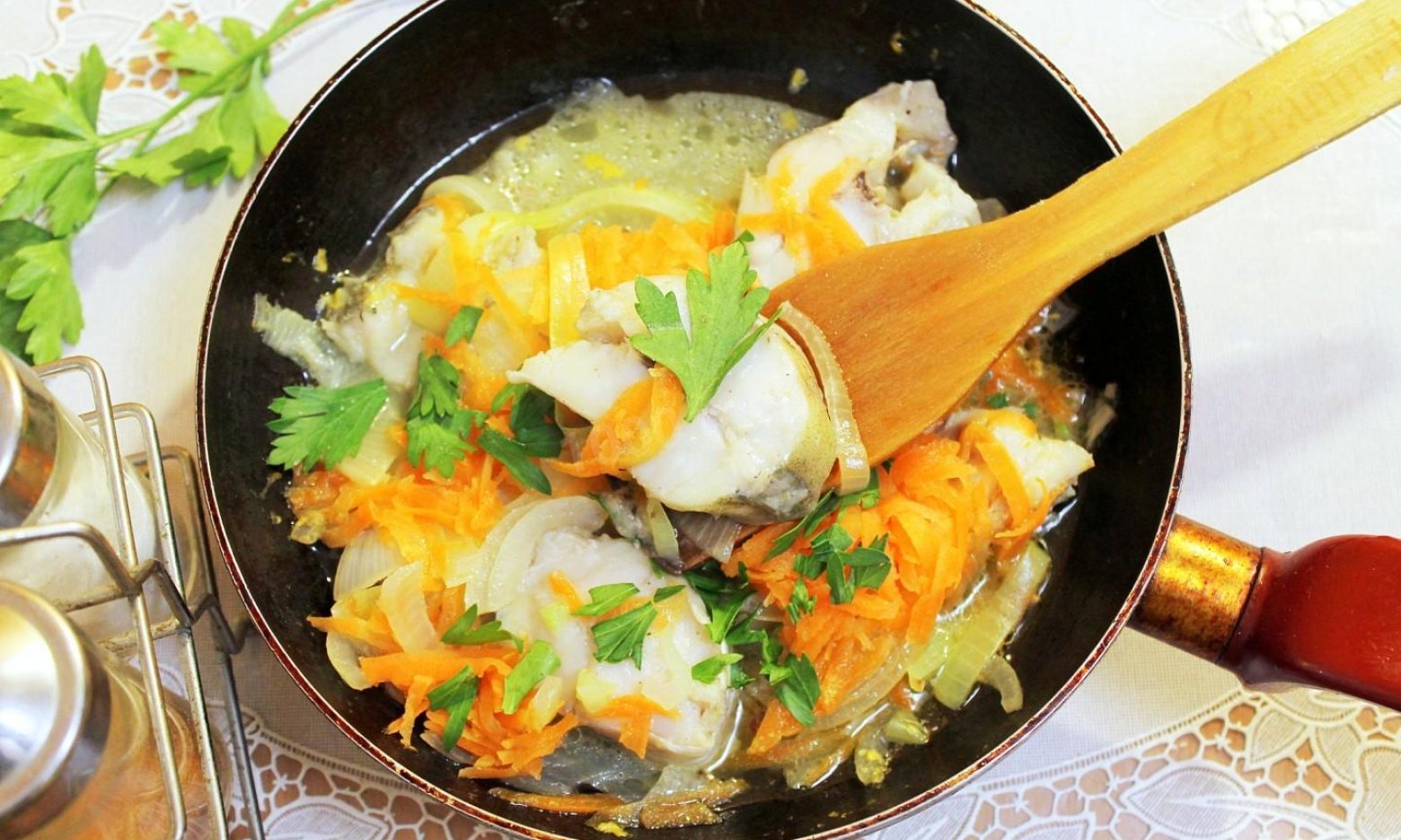 Филе минтая в сметане с овощами 106 фото